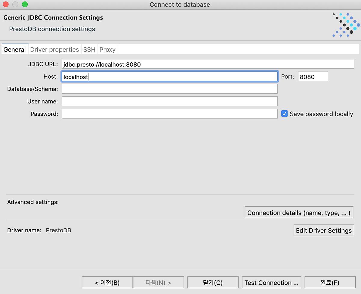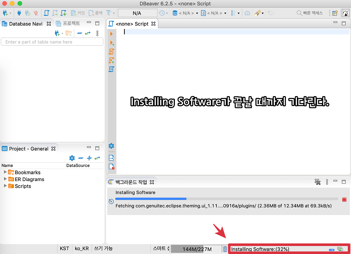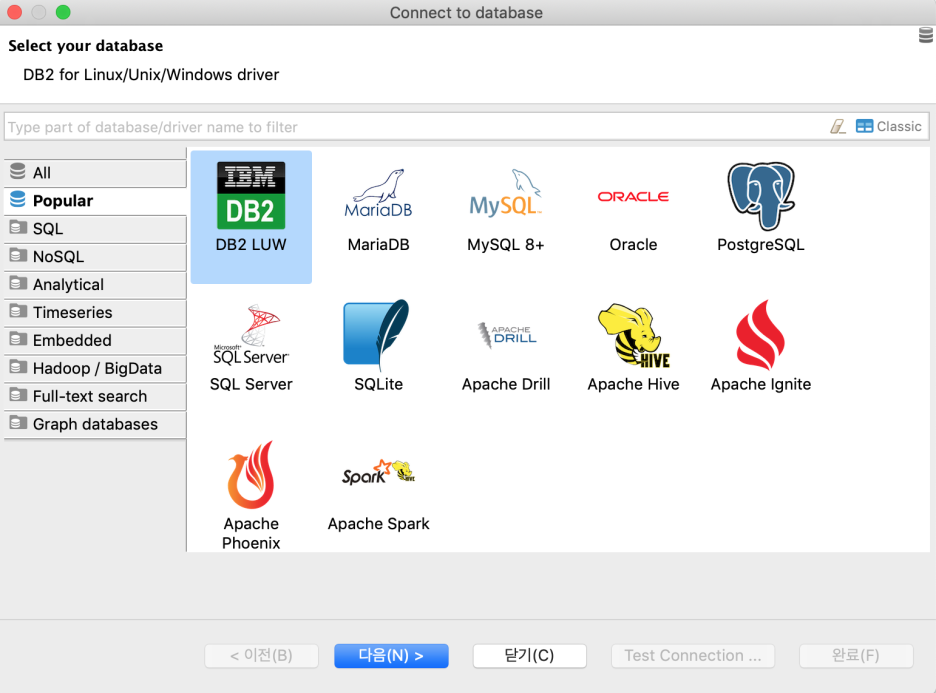 • DB 접속을 위한 드라이버가 없을 경우, 드라이버를 설치하라고 안내창이 뜬다.