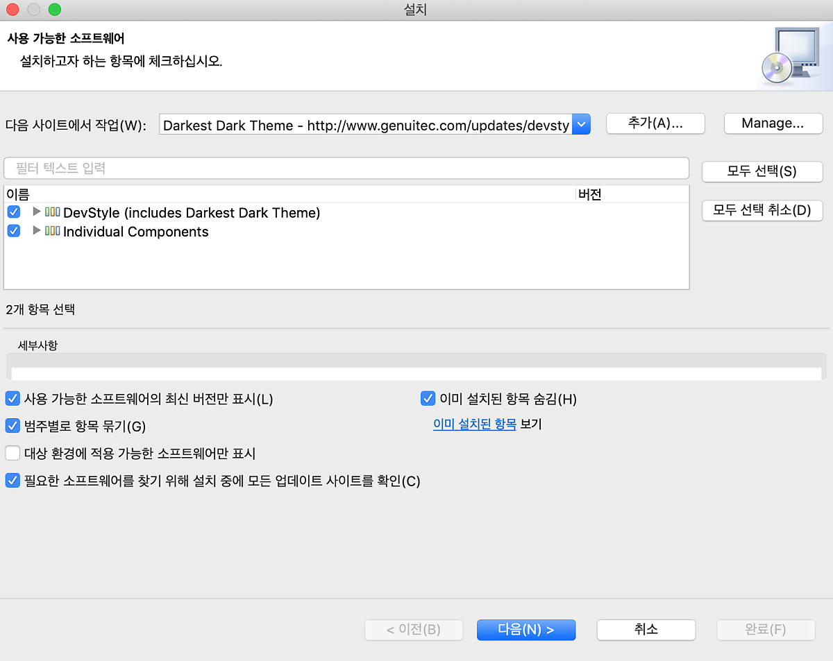 추가로 테마 설정을 다시하려면 환경설정(command + ,)에 들어가 DevStyle을 선택하면 된다.