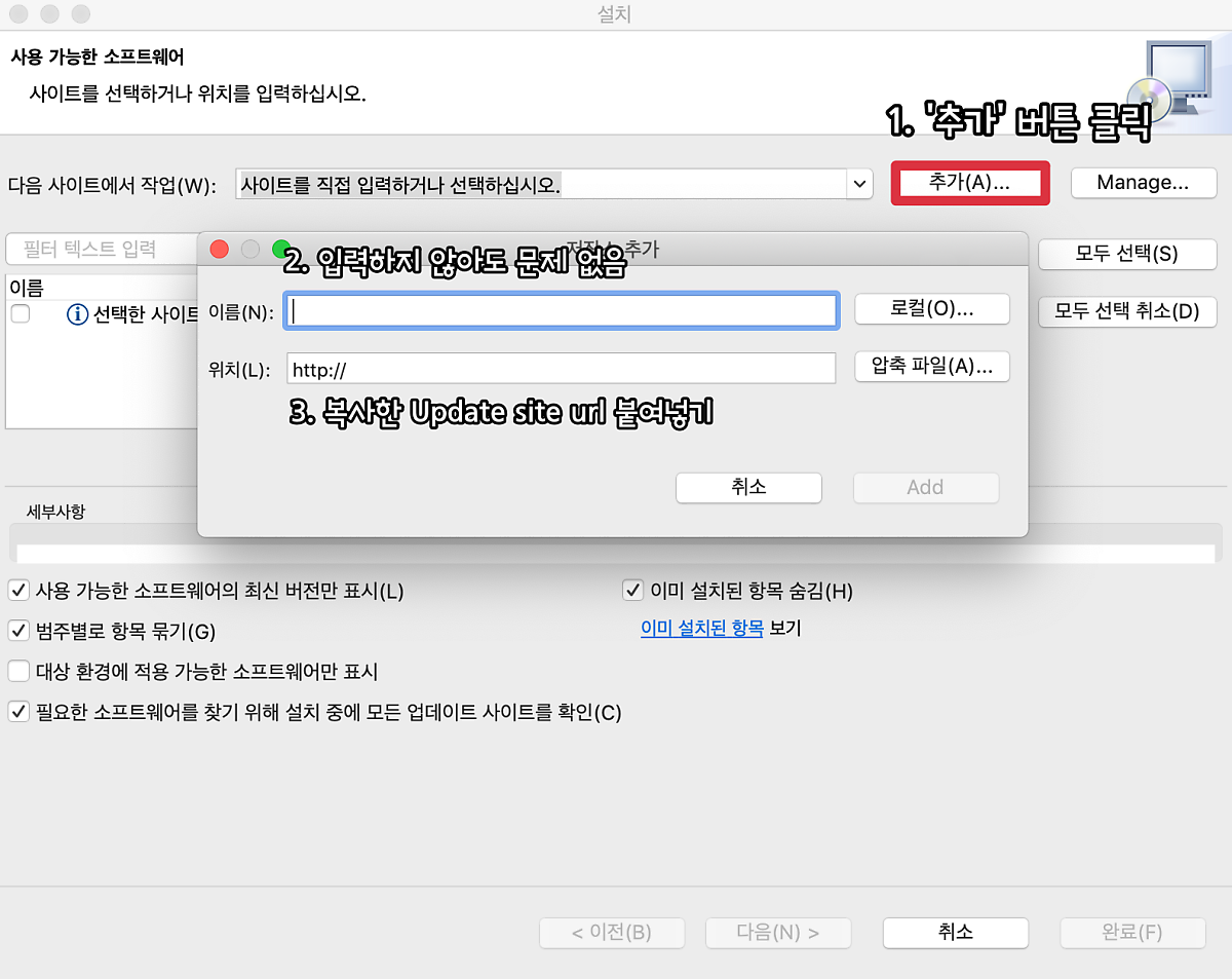 2. DBeaver > 도움말 > Install software > 사이트 링크 붙여넣기