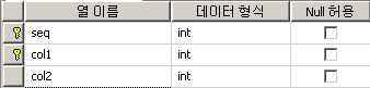seq가 ㄱ, ㄴ, ㄷ, ㄹ .. ㅎ 의 힌트를 주는 탭 같은거라면 col1은 아, 야, 어, 여, .. , 이의 힌트